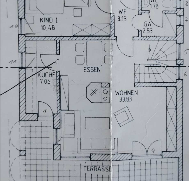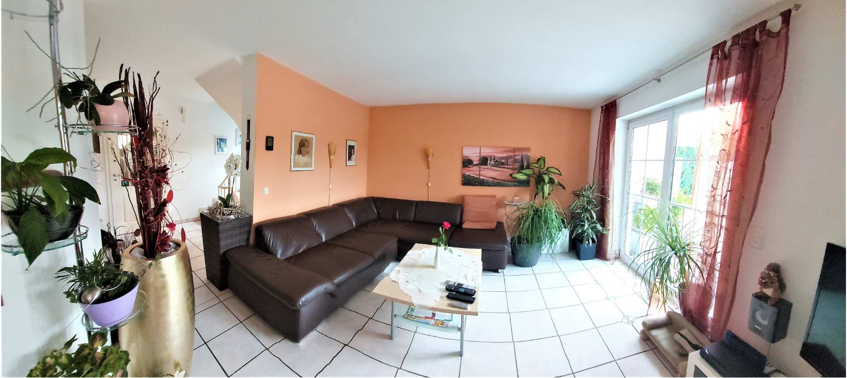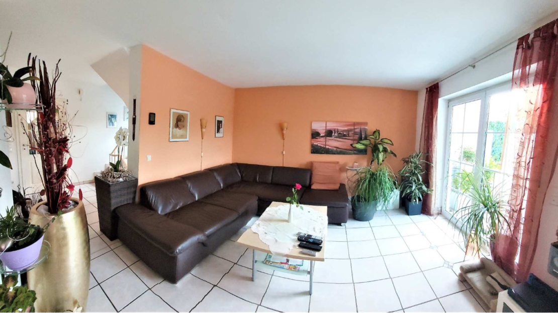 Das Haus bietet viel Platz für eine Familie mit Kindern. Der geräumige und helle Wohn-/Essbereich verfügt über bodentiefe Sprossenfenster zur Terrasse, die für zusätzliches Flair sorgen. Mittelpunkt des Wohnbereichs ist der Kachelofen, der auch an kalten Wintertagen mit knisternder Wärme für viel Gemütlichkeit sorgt.
