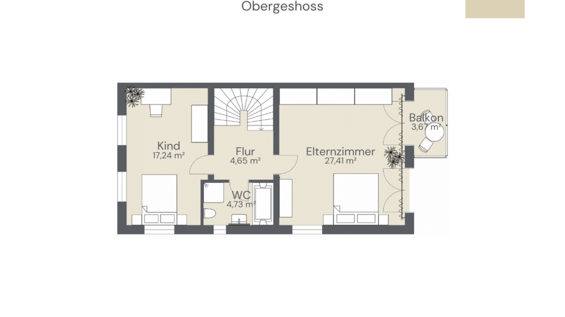 Über die Treppe gelangen Sie ins Obergeschoss. Hier befinden sich: